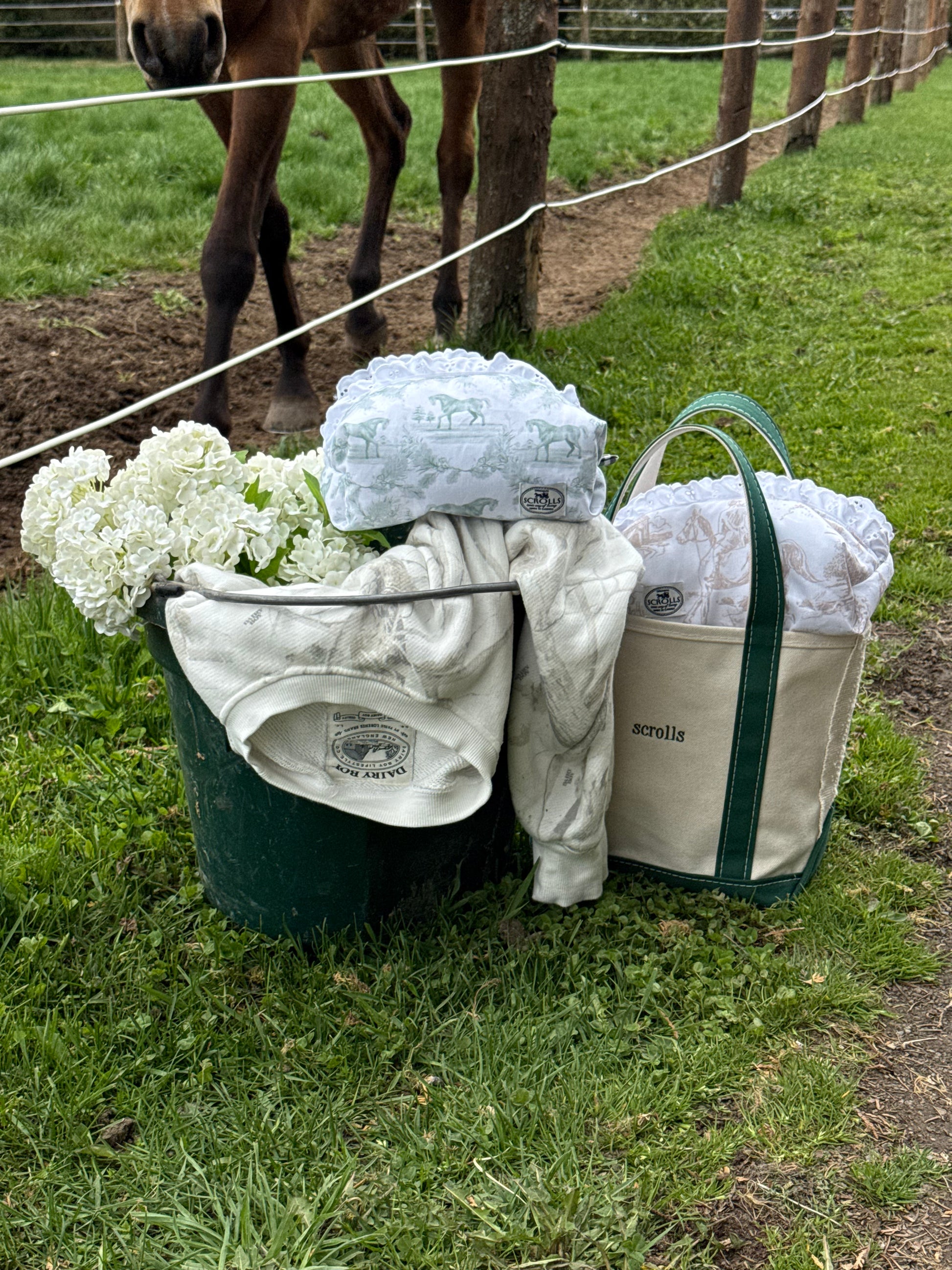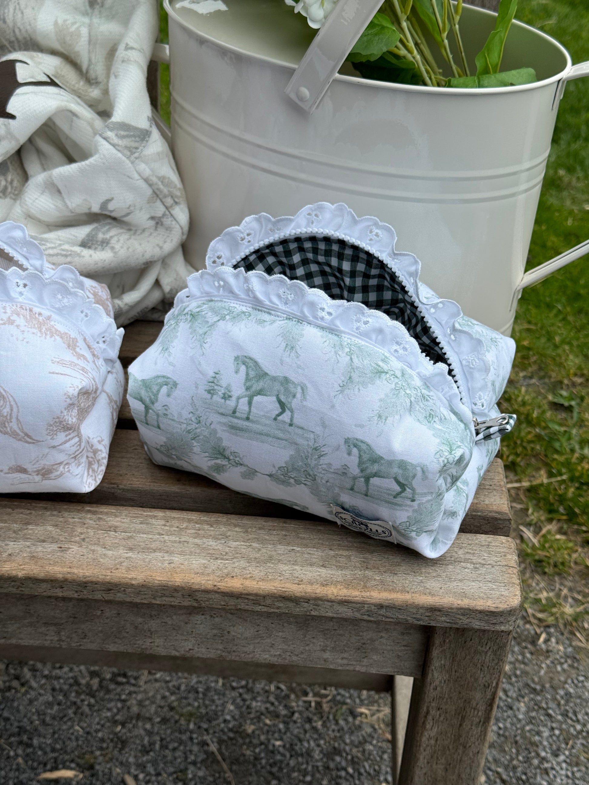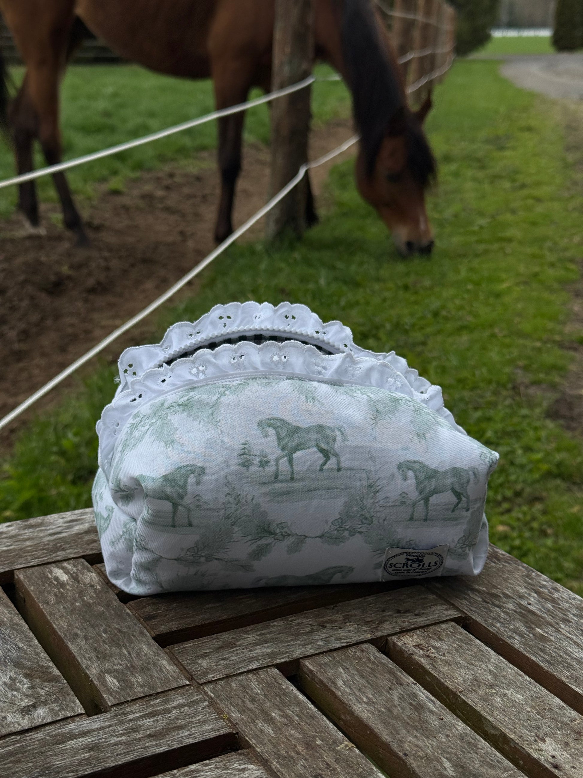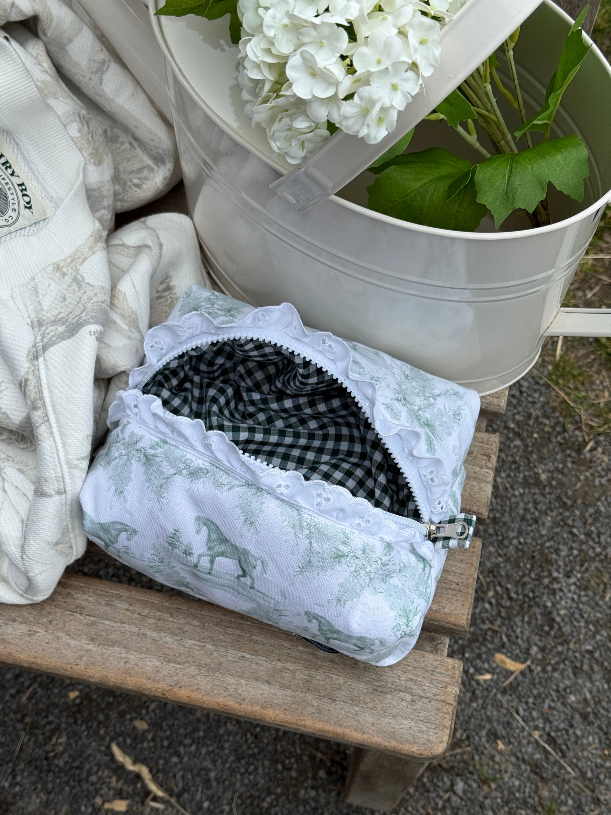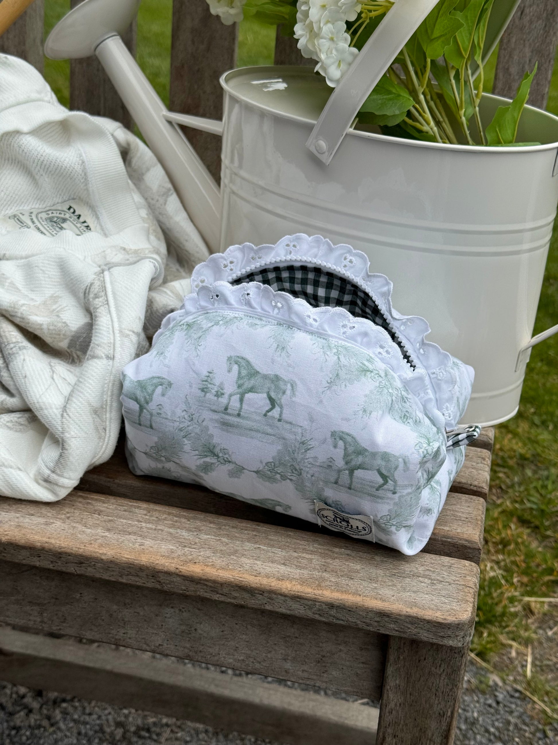 The Horse Girl bag features a green gingham inner lining & an outer quilting.